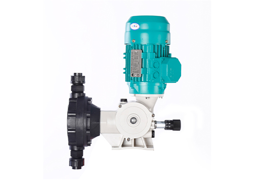 当推杆拉动膜片往后运动时,膜片与泵头之间容积增加,产生负压,吸入管路的单向阀打开,进口管路中的介质进入泵头腔体内,当吸入冲程结束,隔膜运动瞬间停止,泵头内压力与进口管内压力平衡,吸入口单向阀复位。在排出冲程时,与滑杆连接的膜片向前运动,泵头内压力立刻升高,当泵头压力高于出口压力时打开出口单向阀,泵头内的介质进入排出管路,当排出冲程结束时,膜片运动再次停止,泵头内的压力与出口压力相等,出口单向阀复位,然后进入下一个循环,从而形成液体以脉冲形式的传输。转动冲程调节杆,调节杆向箱体内旋转进给或远离,使得推杆行进的距离相应的减小或增大,从而调节冲程的大小,最终达到改变冲程调节流量的目的。