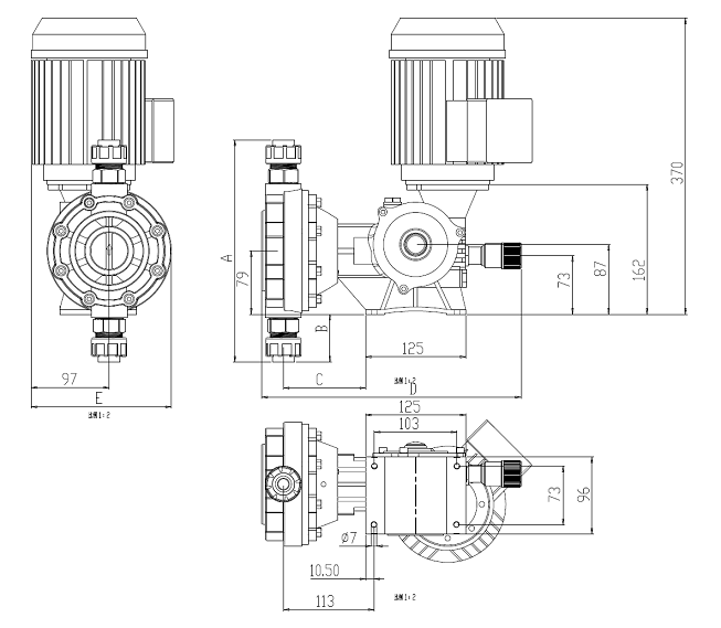 侧面图 泵头正面图