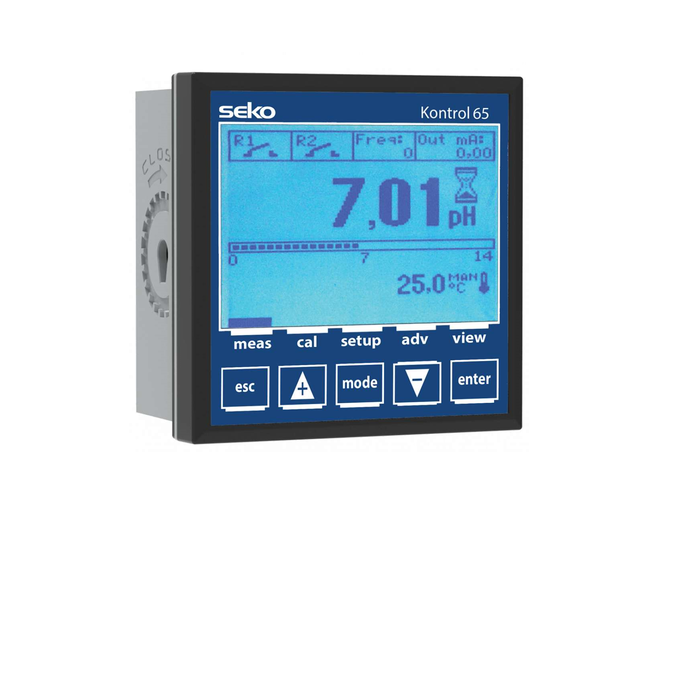 Kontrol 65专为高端水处理应用中的pH值、ORP电位、电导率、流速、浊度和氧气测量而设计,具有多项功能,旨在简化从反渗透到冷却水处理等最复杂流程的操作。该单参数控制器配备了Modbus RTU/ASCII协议,可通过RS485端口进行远程控制,便于在较大的多站点复杂系统中使用。 此外,该控制器还显示二维码,可供扫描以快速便捷地访问手册,同时“电极质量”控制功能可协助操作员管理和更换测量电极。 此外,多彩背光屏幕即使在弱光环境下也易于阅读,并具有反转显示功能,可以反转屏幕上的文本,提供高对比度。